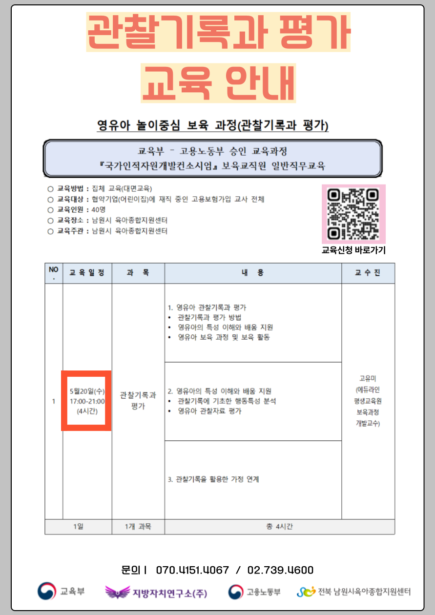 [어린이집지원] 관찰기록과 평가 교육 & 다문화아동 및 가족 지원 교육 신청 안내
