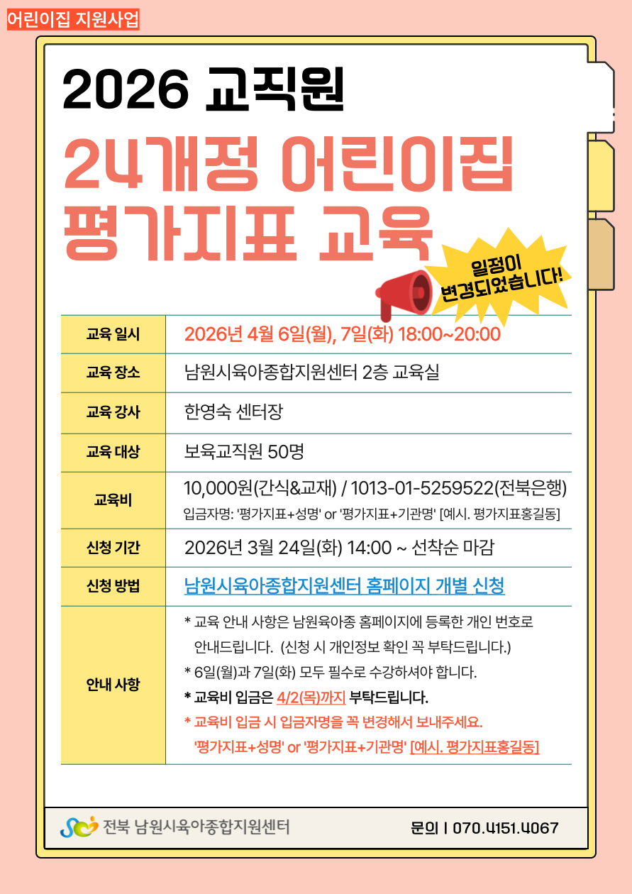 | [평가제] 24 개정 어린이집 평가지표 교육(보수교육연계 4h) | |