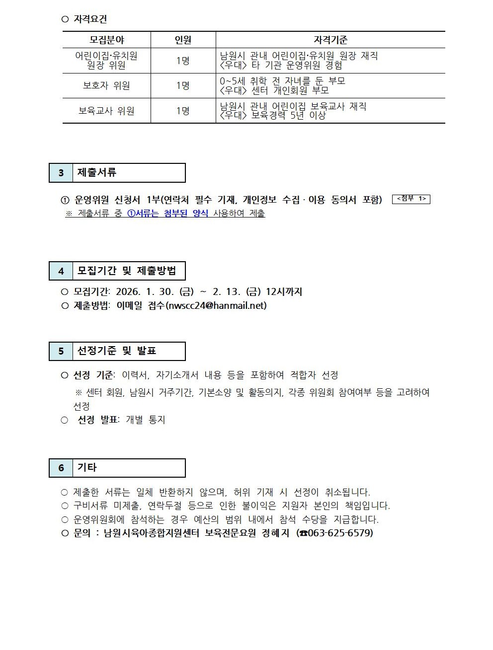[운영위원회] 2026년 남원시육아종합지원센터 운영위원회 운영위원 모집 공고