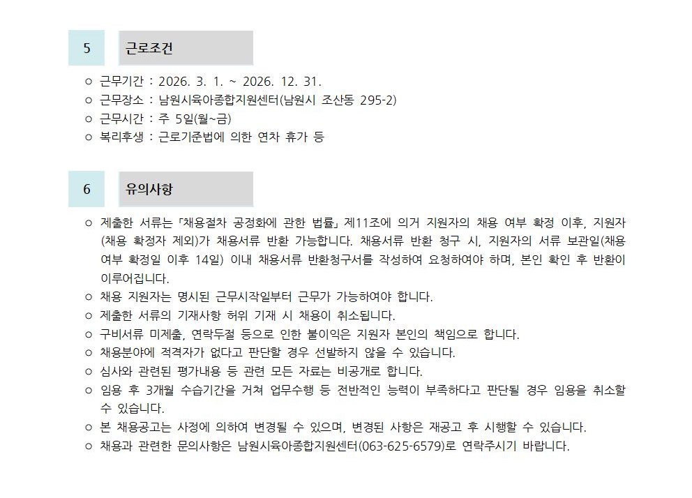 [채용] 제2026-2호 남원시육아종합지원센터 직원채용 공고