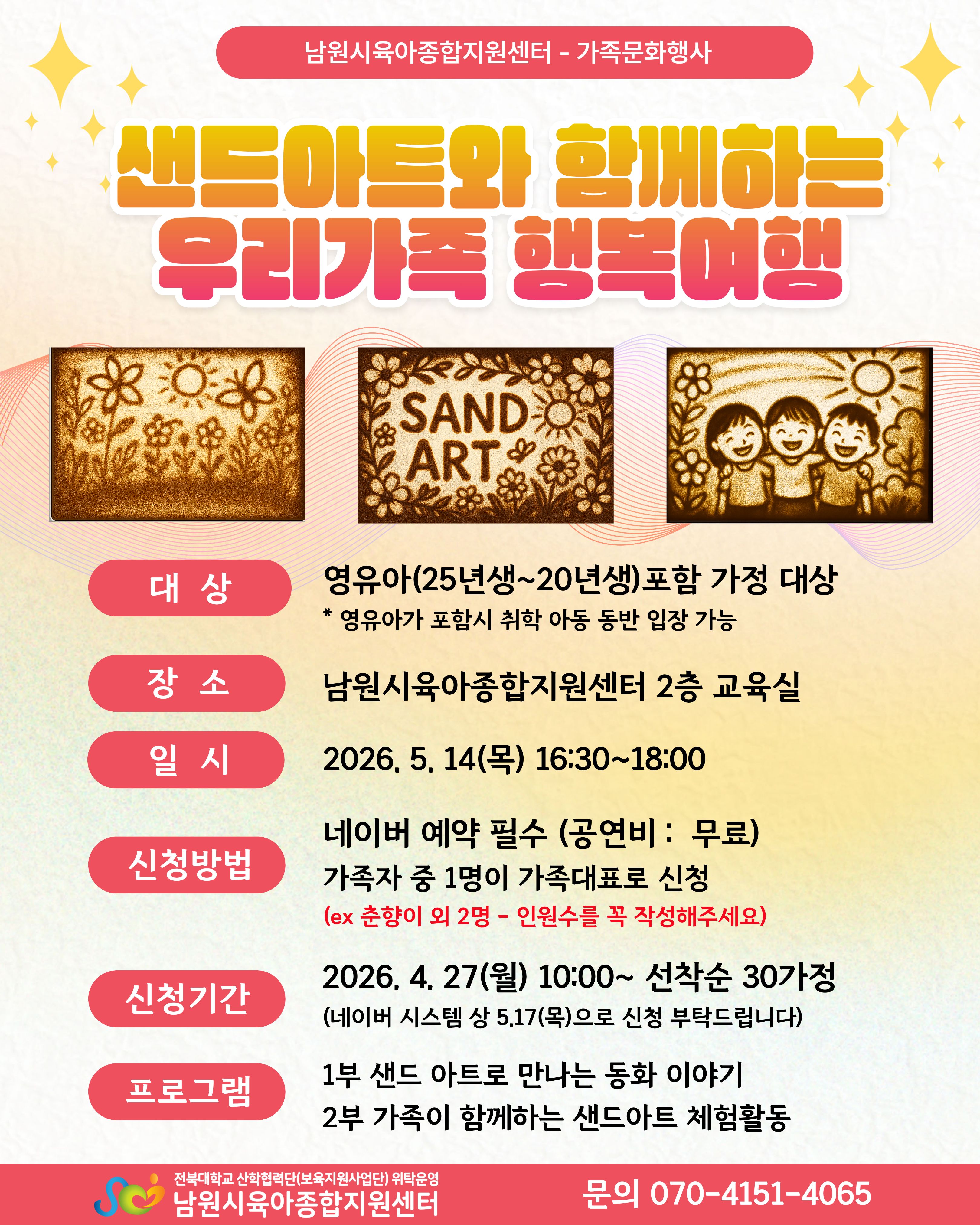 [안내] [가정양육지원] 5월 가족문화행사 (샌드아트와 함께하는 우리 가족 행복여행)