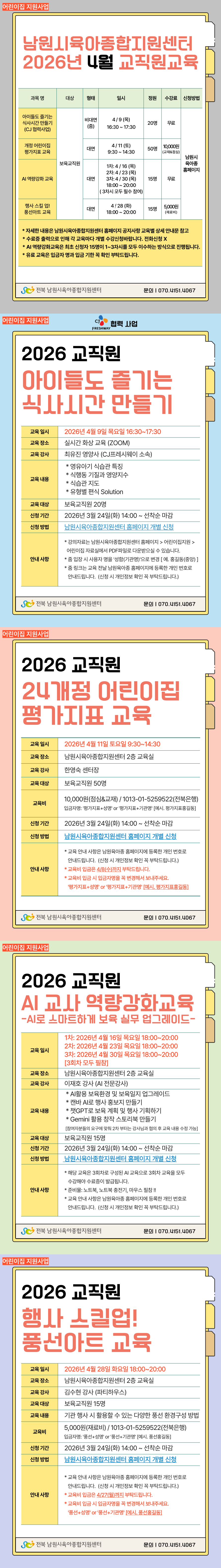 [안내] [어린이집지원] 4월 교직원 교육 일정 및 신청 안내