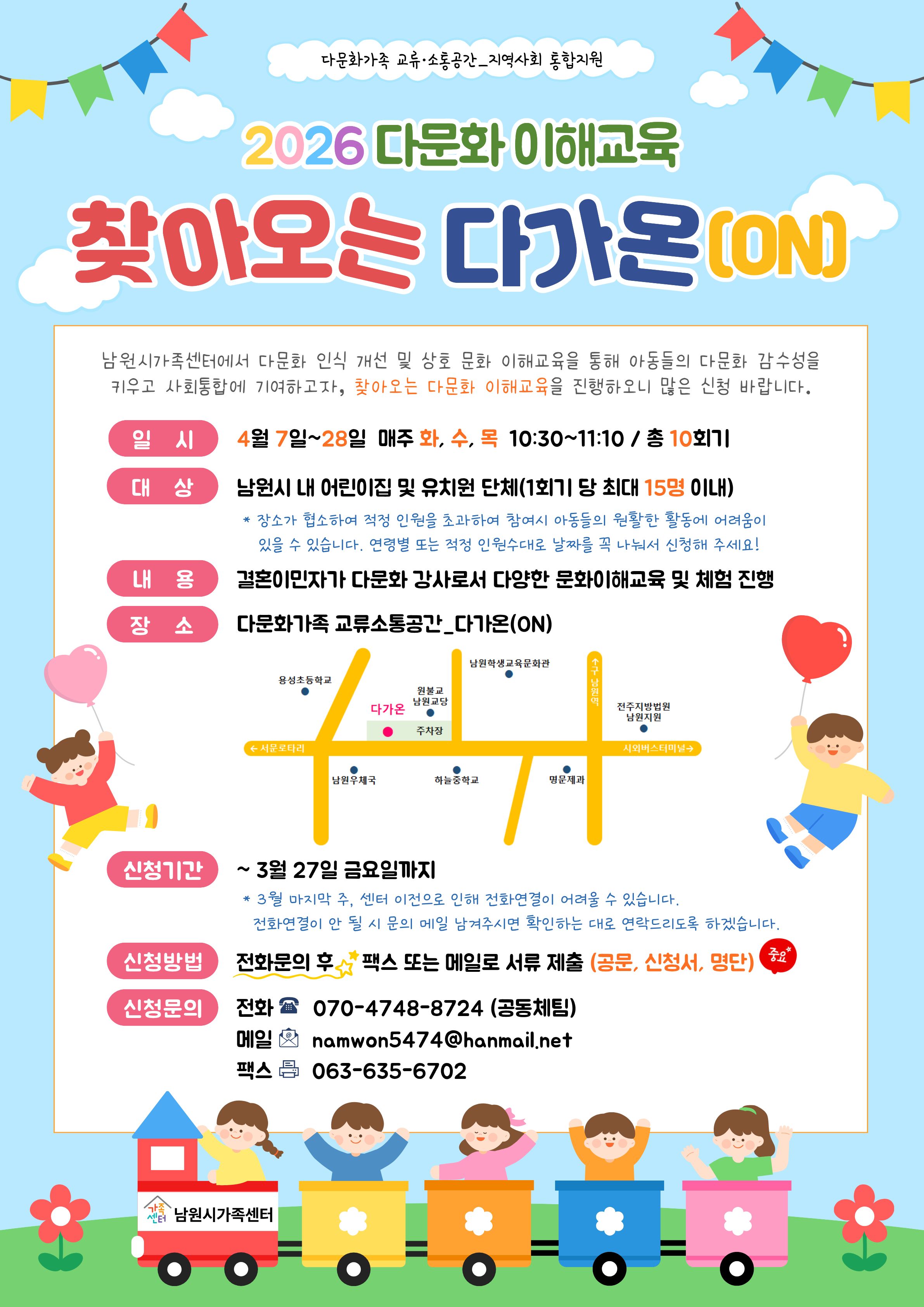 [안내] [홍보협조] 남원시가족센터 다문화 이해교육(찾아오는 다가온) 신청안내