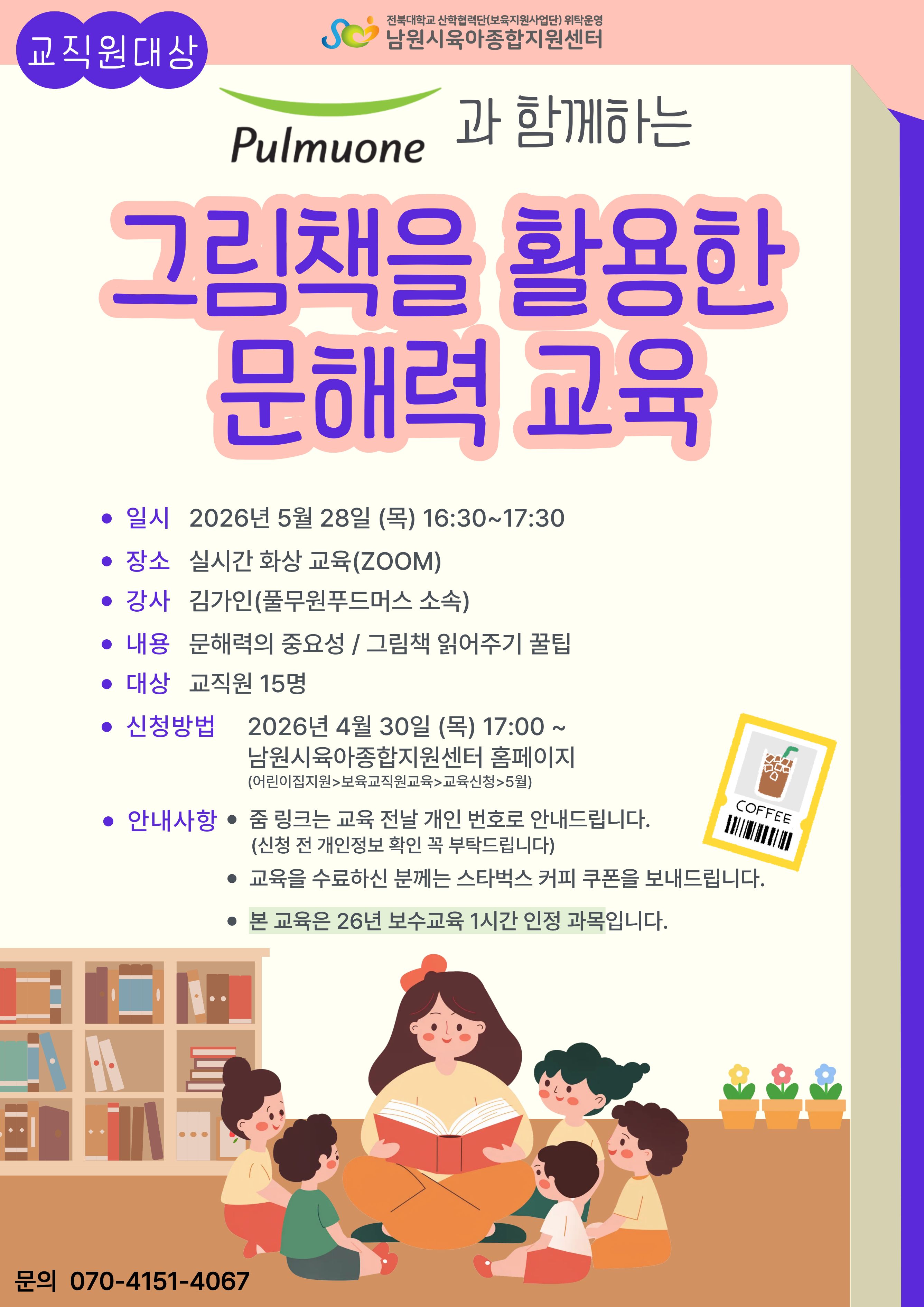 [안내] [어린이집지원] 그림책을 활용한 문해력 교육 신청안내