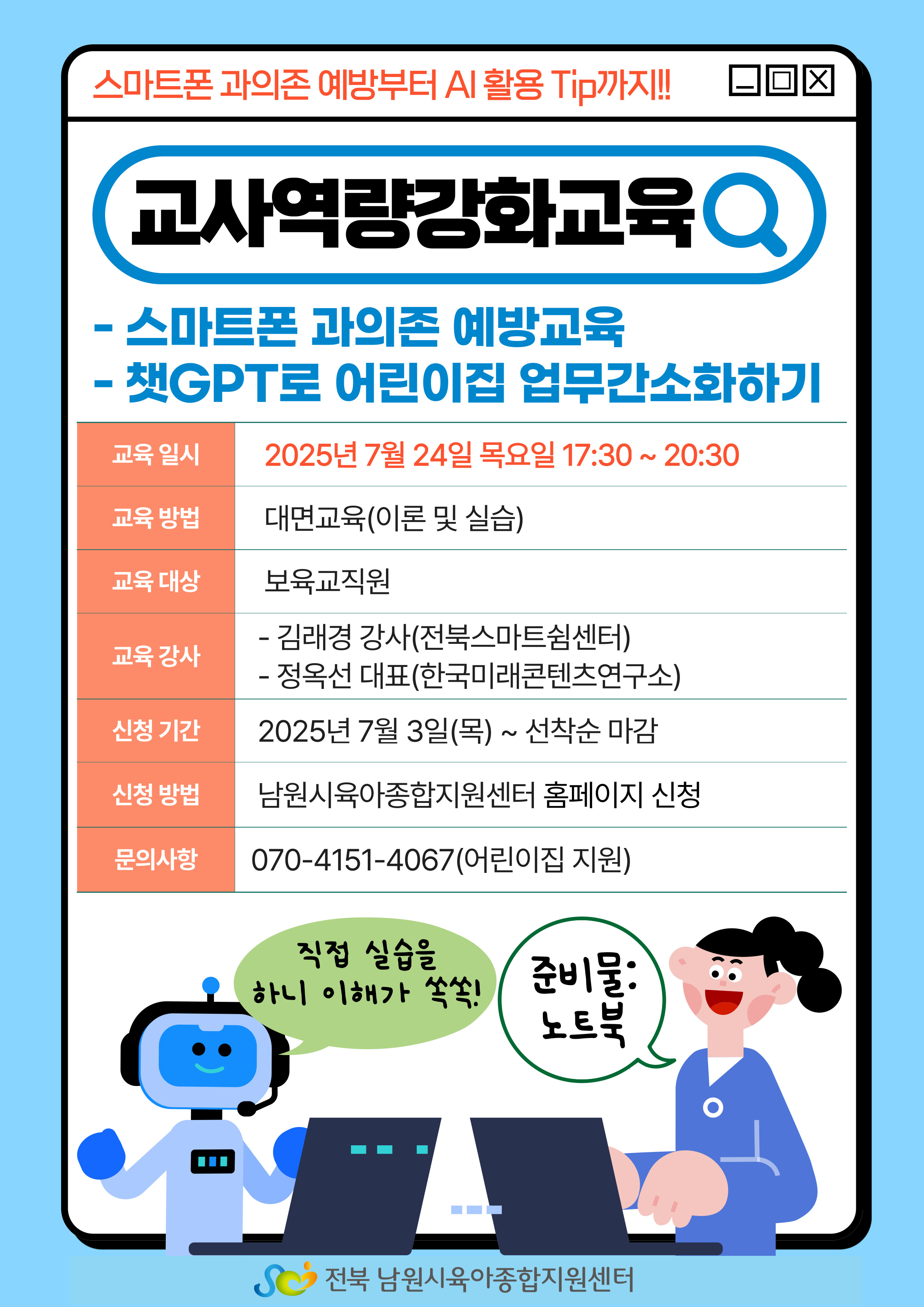 [직무] 어린이집 교사역량강화교육(스마트폰 과의존 예방 및 챗GPT 활용) | |