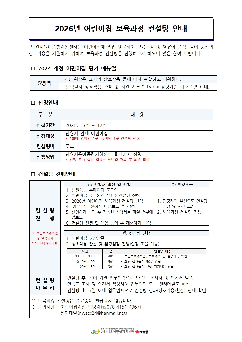 [보육과정] 2026 어린이집 보육과정 컨설팅