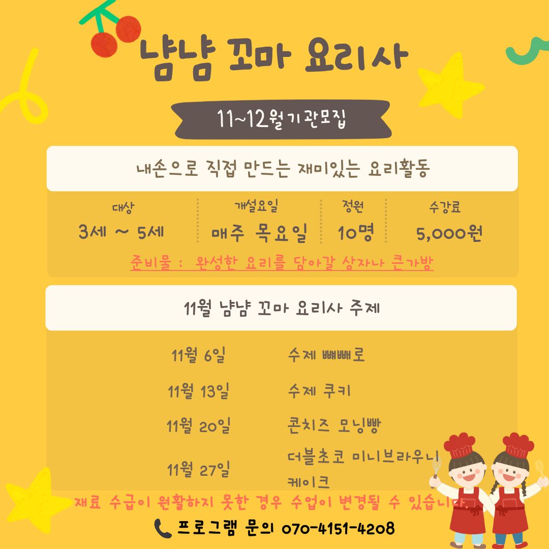 [요리] 냠냠 꼬마 요리사 (11/27 2회차)