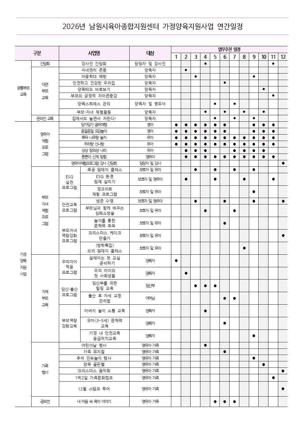 [사업계획] 2026년 가정양육지원사업 연간 사업 계획 일정
