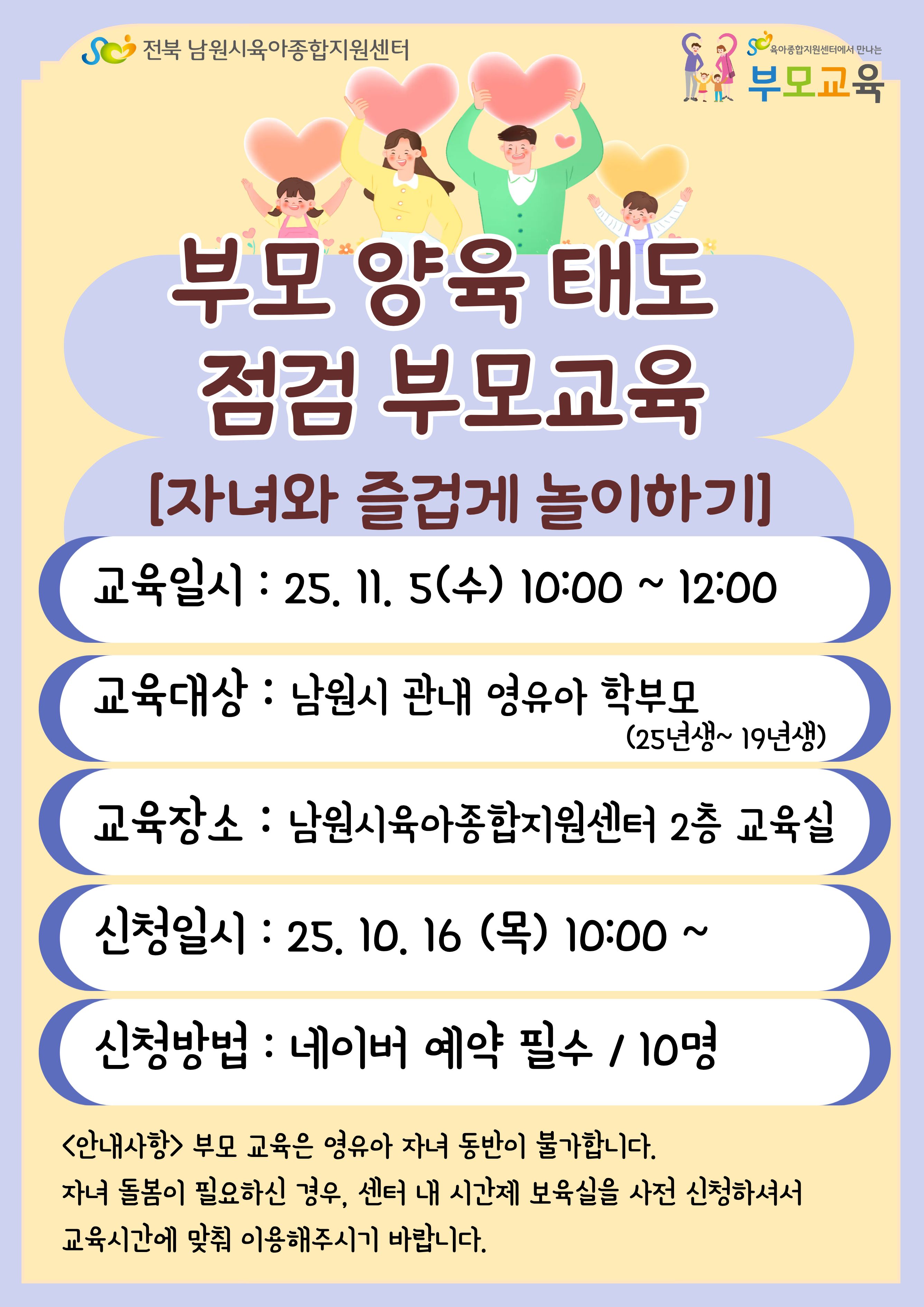 [안내] [공통부모교육] 11월 부모교육 - 부모 양육 태도 점검 부모교육
