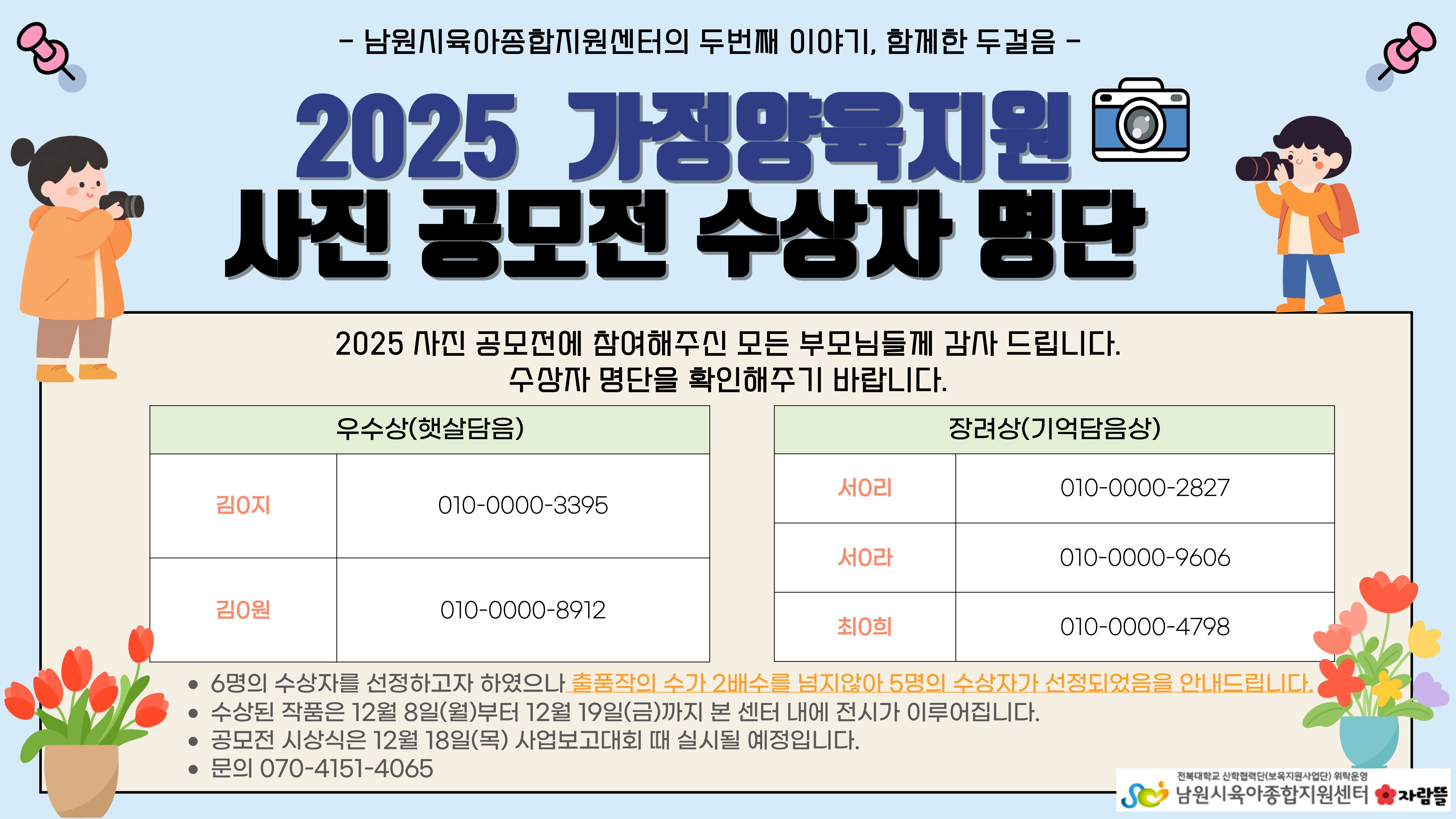 [행사] [사진 공모전] '남원시육아종합지원센터의 두번째 이야기 - 함께한 두걸음' 수상자 명단