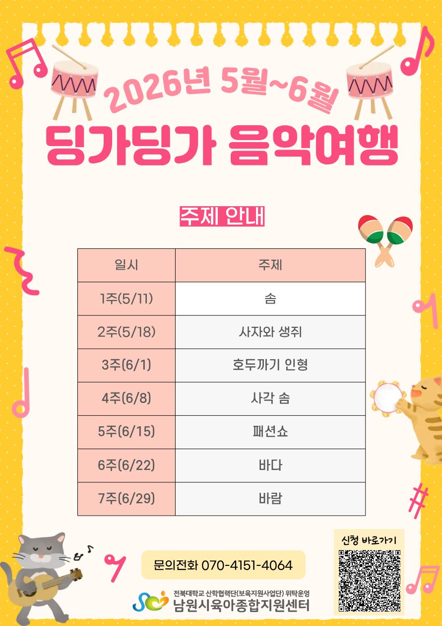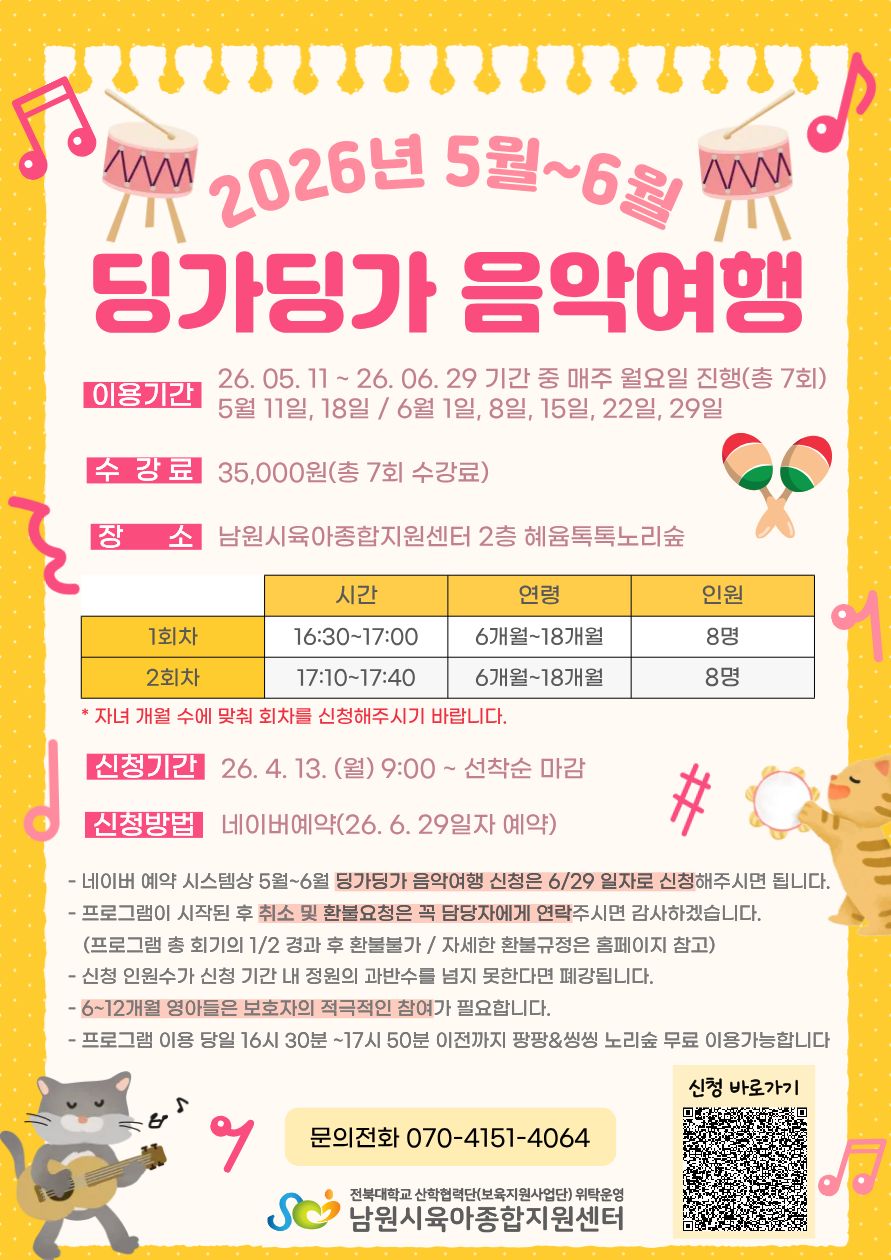 [안내] [영유아체험프로그램] 딩가딩가음악여행 5월~6월 신청안내