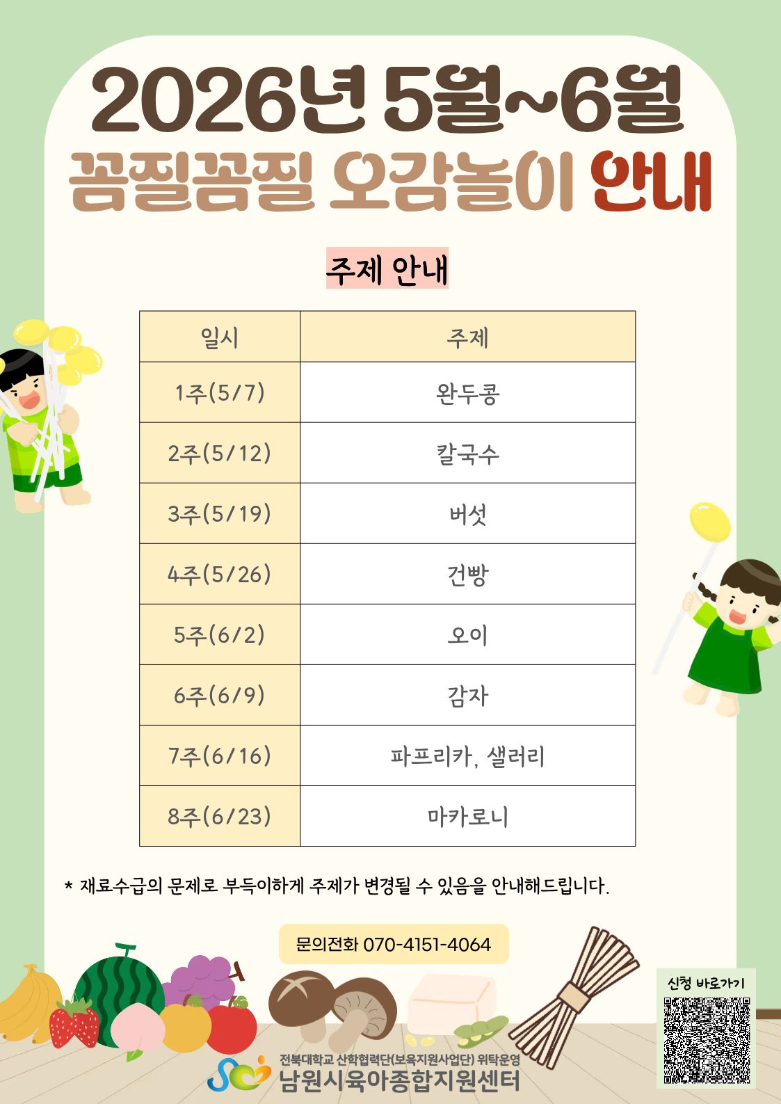 [안내] [영유아체험프로그램] 꼼질꼼질 오감놀이 5월~6월 신청 안내