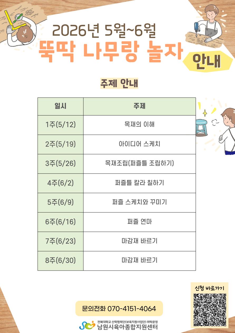 [안내] [영유아체험프로그램] 뚝딱 나무랑 놀자 5월~6월 신청안내