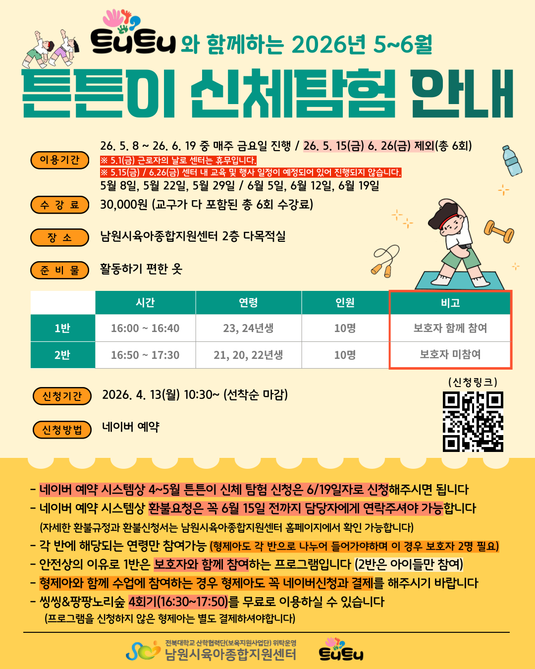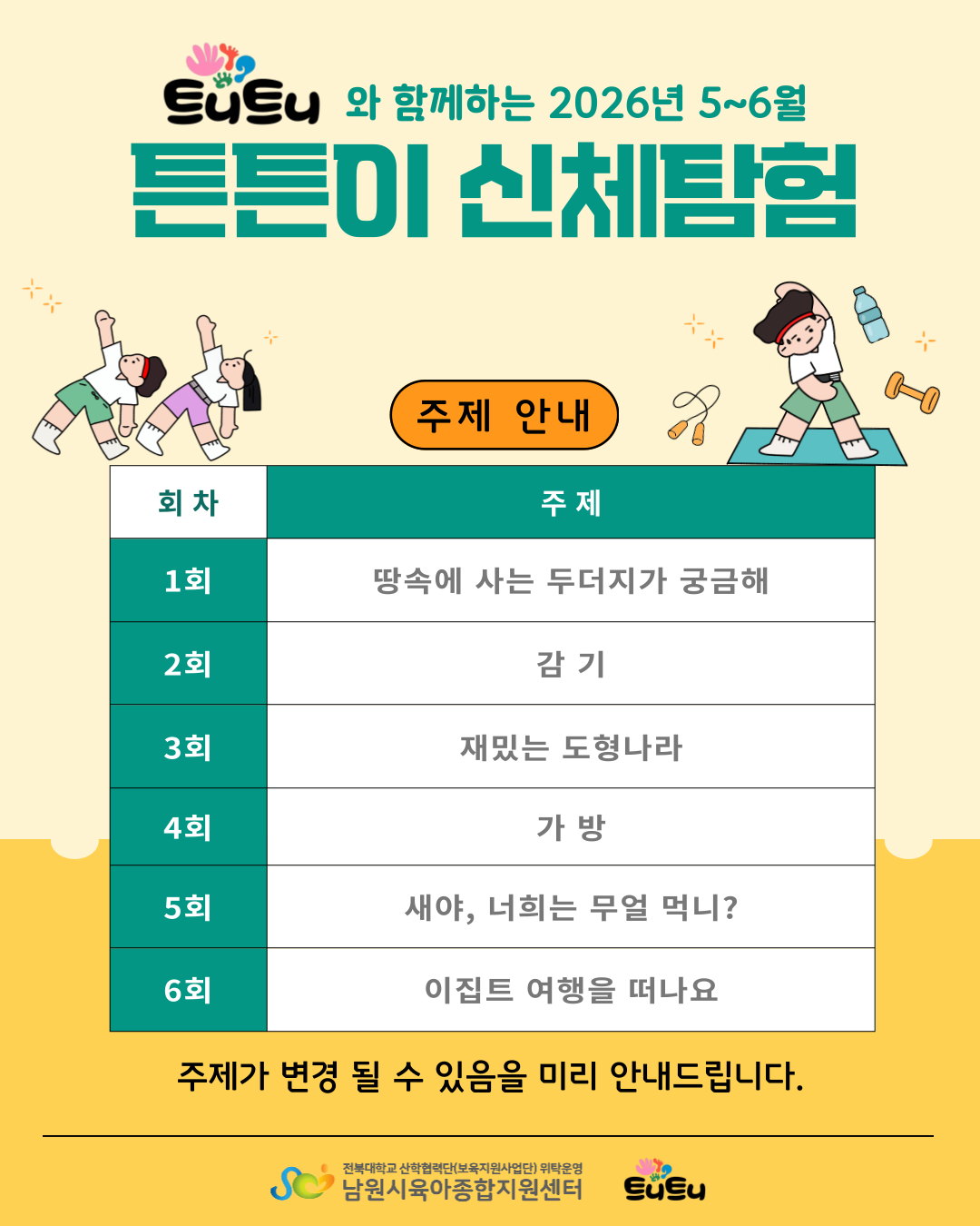 [안내] [영유아체험프로그램] 튼튼이 신체 탐험 5월~6월 신청 안내