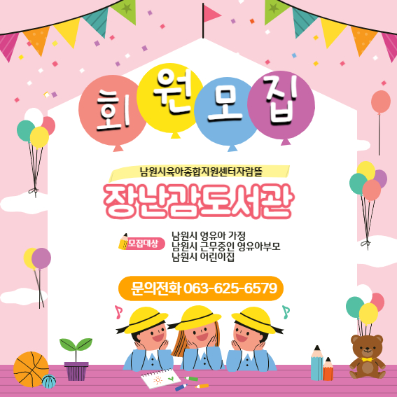 안녕하세요 장난감도서관 회원모집 안내입니다