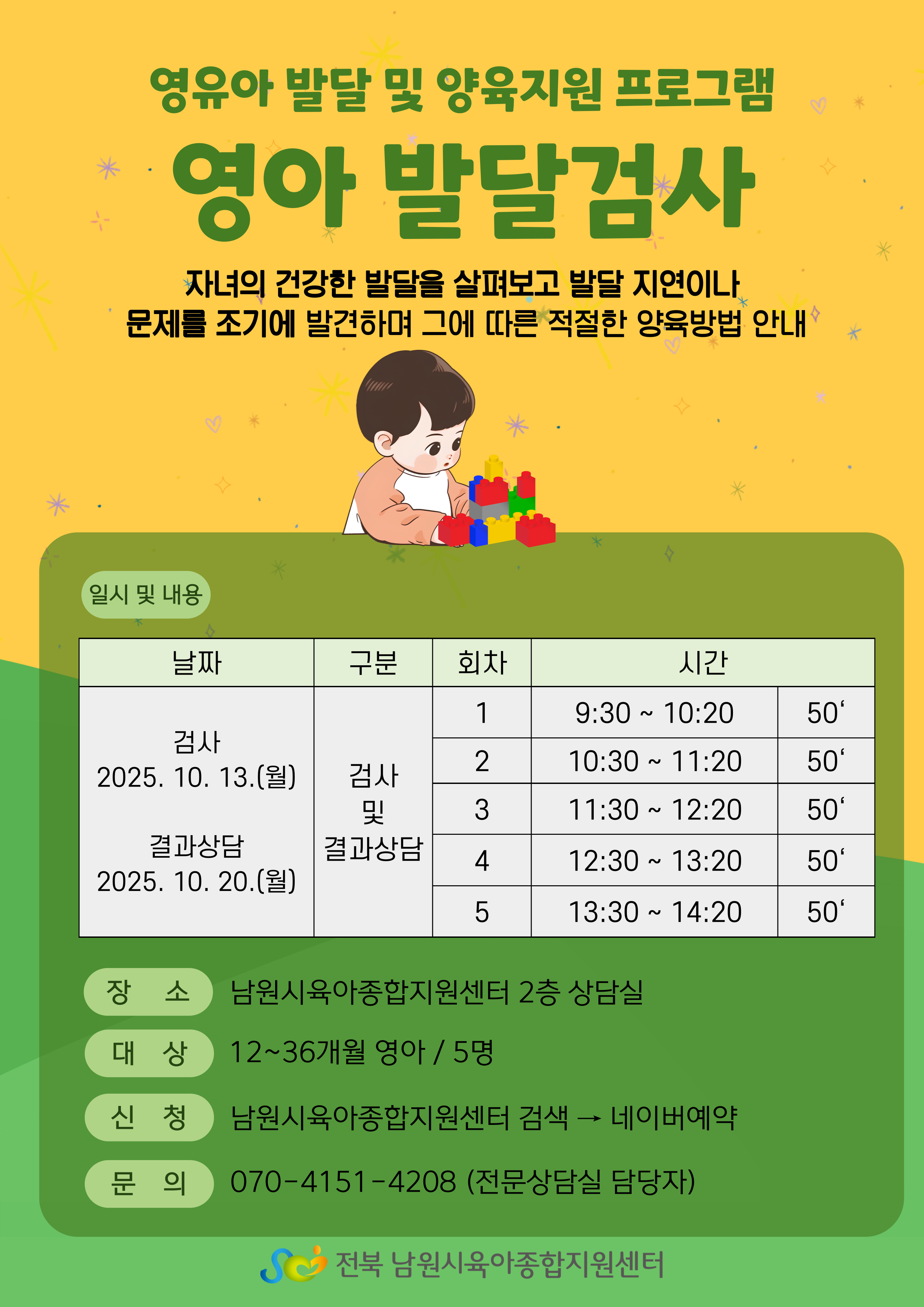 제2025-10호 남원시육아종합지원센터 직원채용 공고(기간연장)