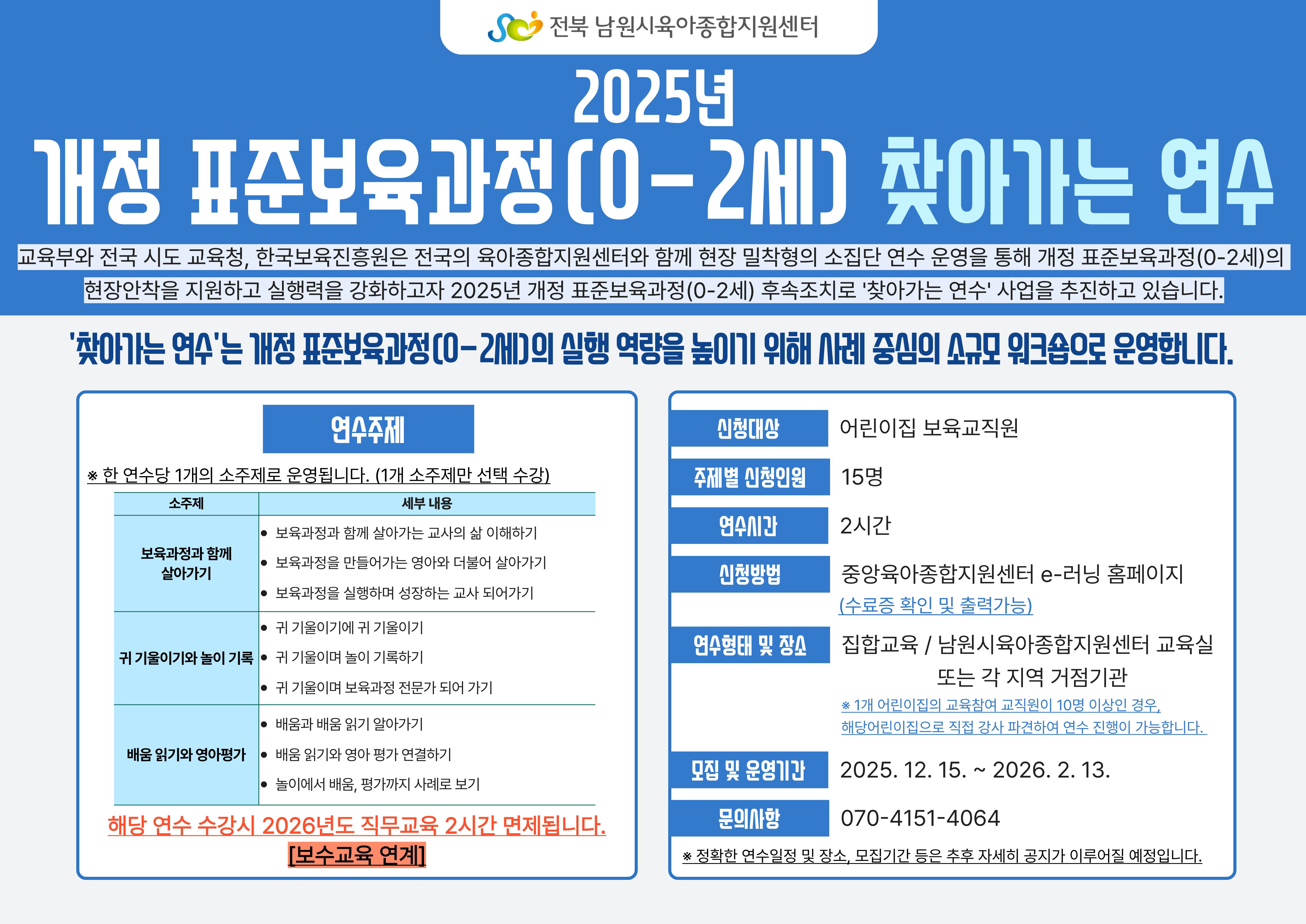 [안내] [보육교직원 교육] 찾아가는 표준보육과정 연수 안내