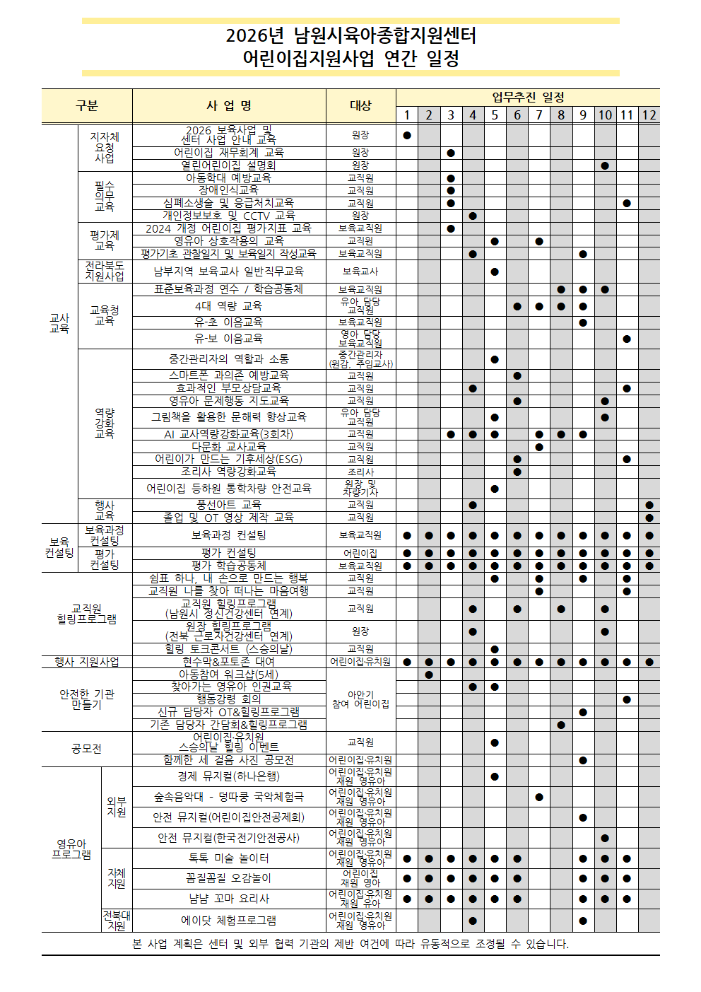 [안내] [연간 사업 계획] 2026년 어린이집지원 연간 사업계획