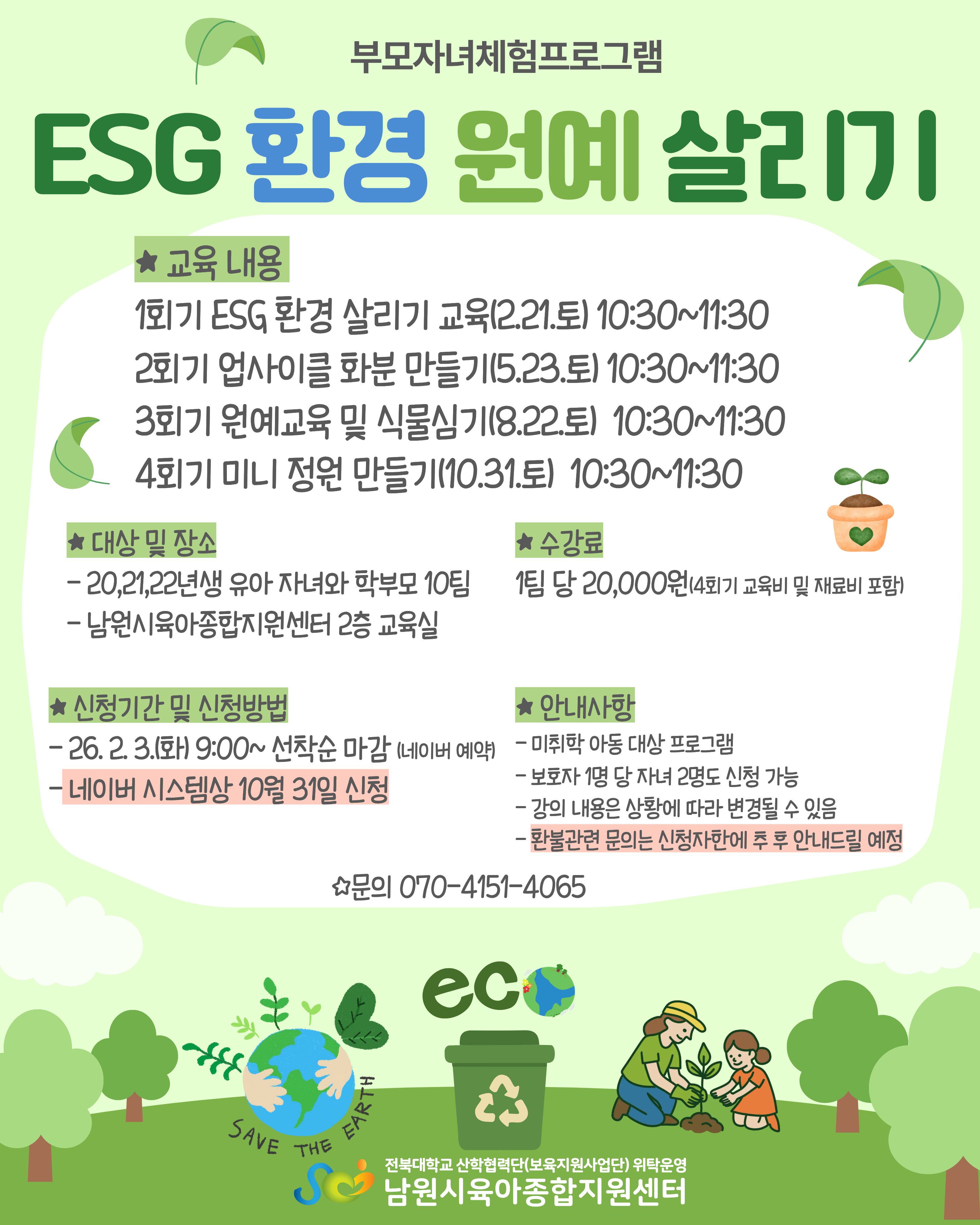 [안내] [부모자녀체험프로그램] ESG 환경.원예 살리기