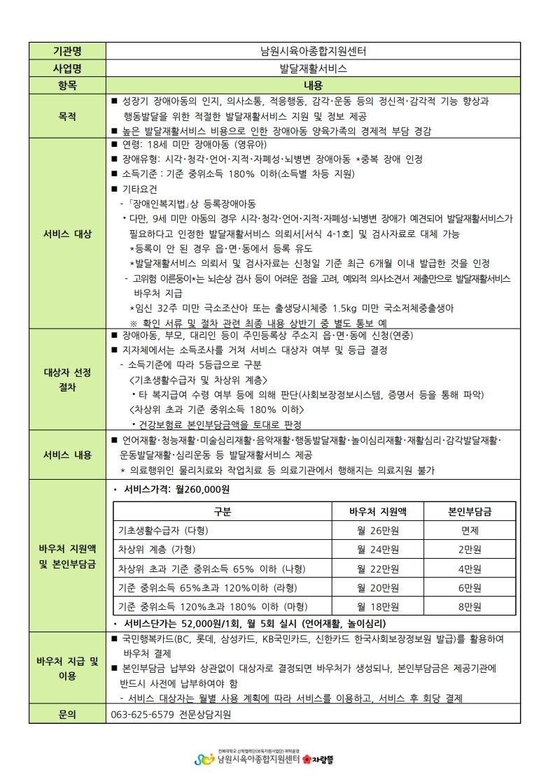 영유아발달지원서비스 제공관련 사항 안내